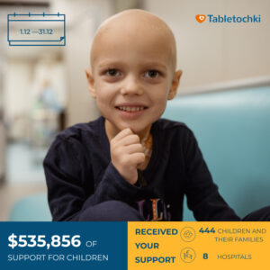 — $39,468 was spent on the Foundation’s palliative care program. Consultations with doctors and psychologists, sessions with rehabilitation therapists, medications, necessary care items, and the fulfillment of dreams — all of these help families with terminally ill children live more comfortably and without pain. We select the types of assistance that best meet each family’s needs. In December, 44 families were under the care of this program.