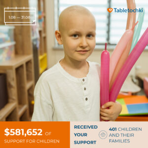 — $40,058 went to palliative care for 56 families with terminally ill children. For those whose illness cannot be cured, as well as for children facing severe cancer complications, we provide diverse support that helps them go through this most difficult time with dignity.